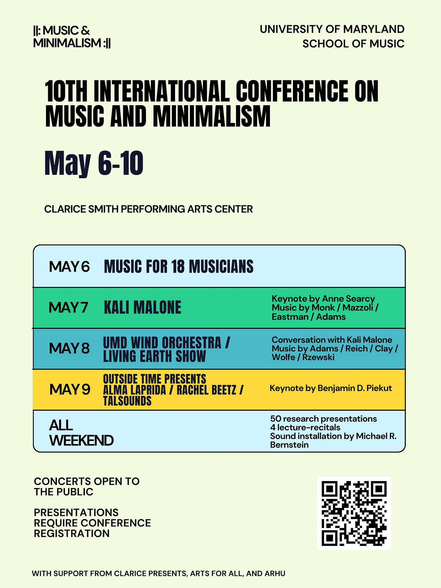 University of Maryland School of Music Hosts 10th International Conference on Music and Minimalism, May 6–10