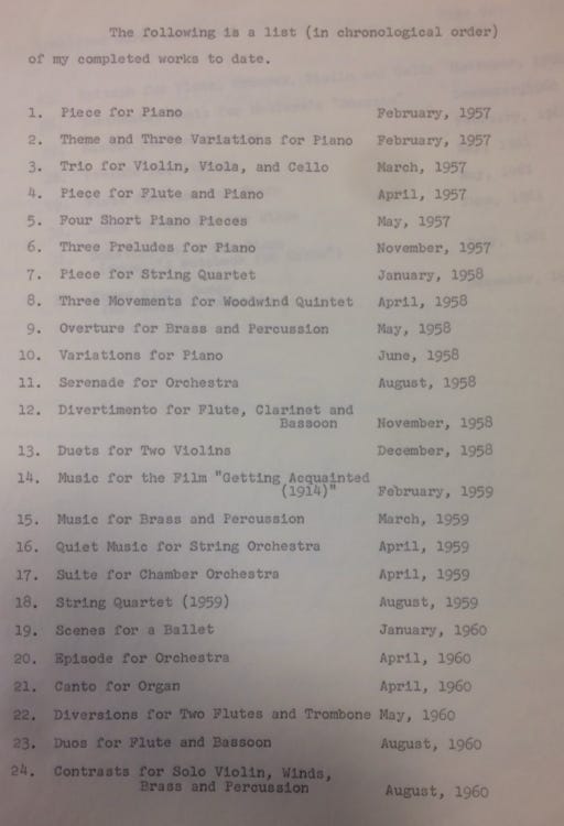 And students from the minimalism seminar I’m teaching will be curating an exhibit of materials from our library’s Special Collections in Performing Arts related to Philip Glass’s work in Pittsburgh public schools in the early ‘60s (part of the Contemporary Music Project, when the Ford Foundation put composers-in-residence at public schools across the country). From Glass’s application to the program: